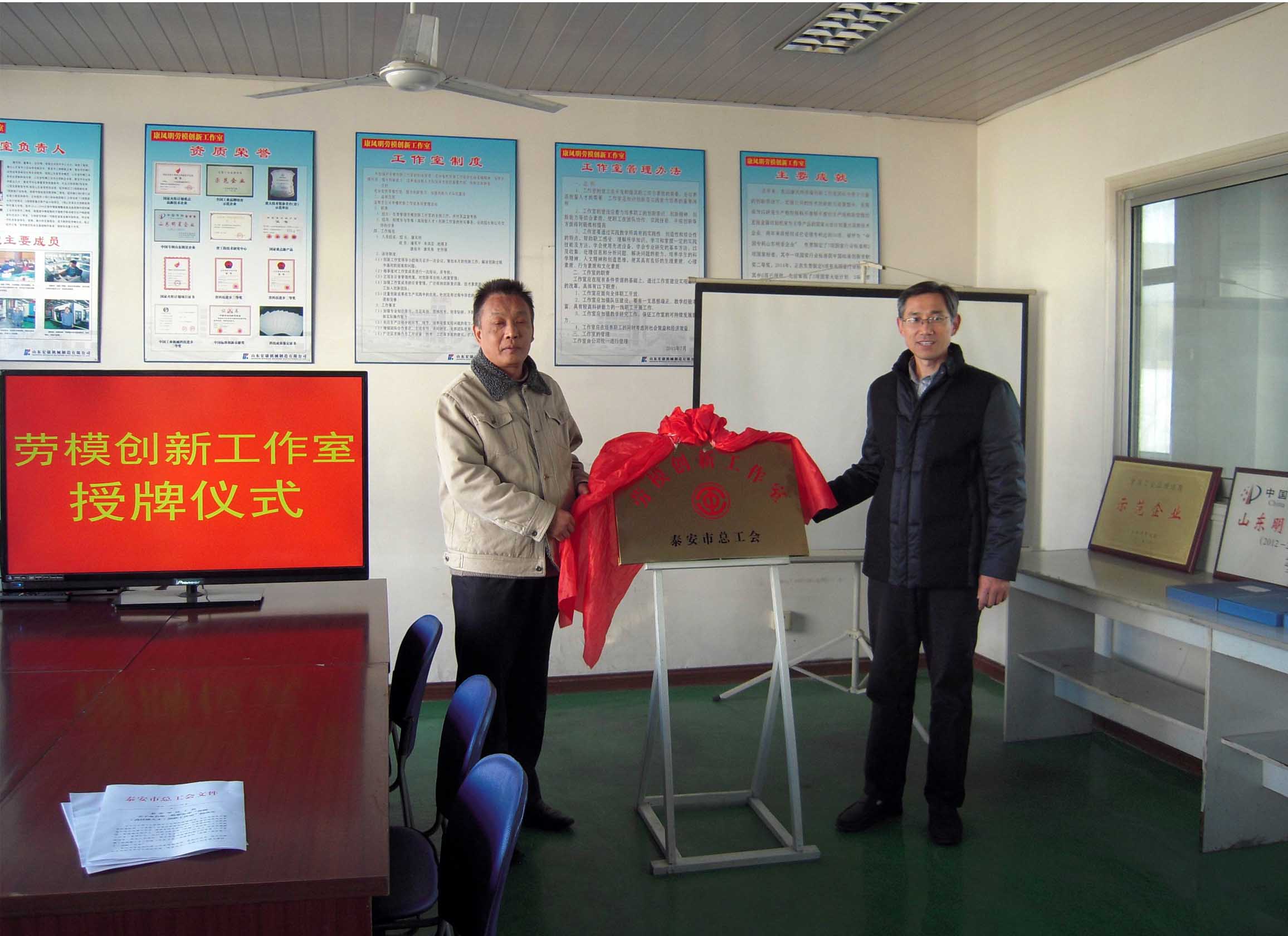 根據泰會(2014)50號《泰安市總工會關于命名第二批泰安市“勞模(高技能人才)創新工作室”的決定》文件精神,“康鳳明勞模創新工作室”被命名為第二批泰安市“勞模創新工作室”,這是繼今年5月份“康鳳明勞模創新工作室”被岱岳區總工會首批命名后取得的又一殊榮。12月5日,市總工會生產保護部部長劉軍、岱岳區總工會常務副主席李福江等市區部門領導來集團公司舉行了揭牌、授牌、掛牌儀式。副總經理、工會主席聶化濤等領導參加了活動儀式。