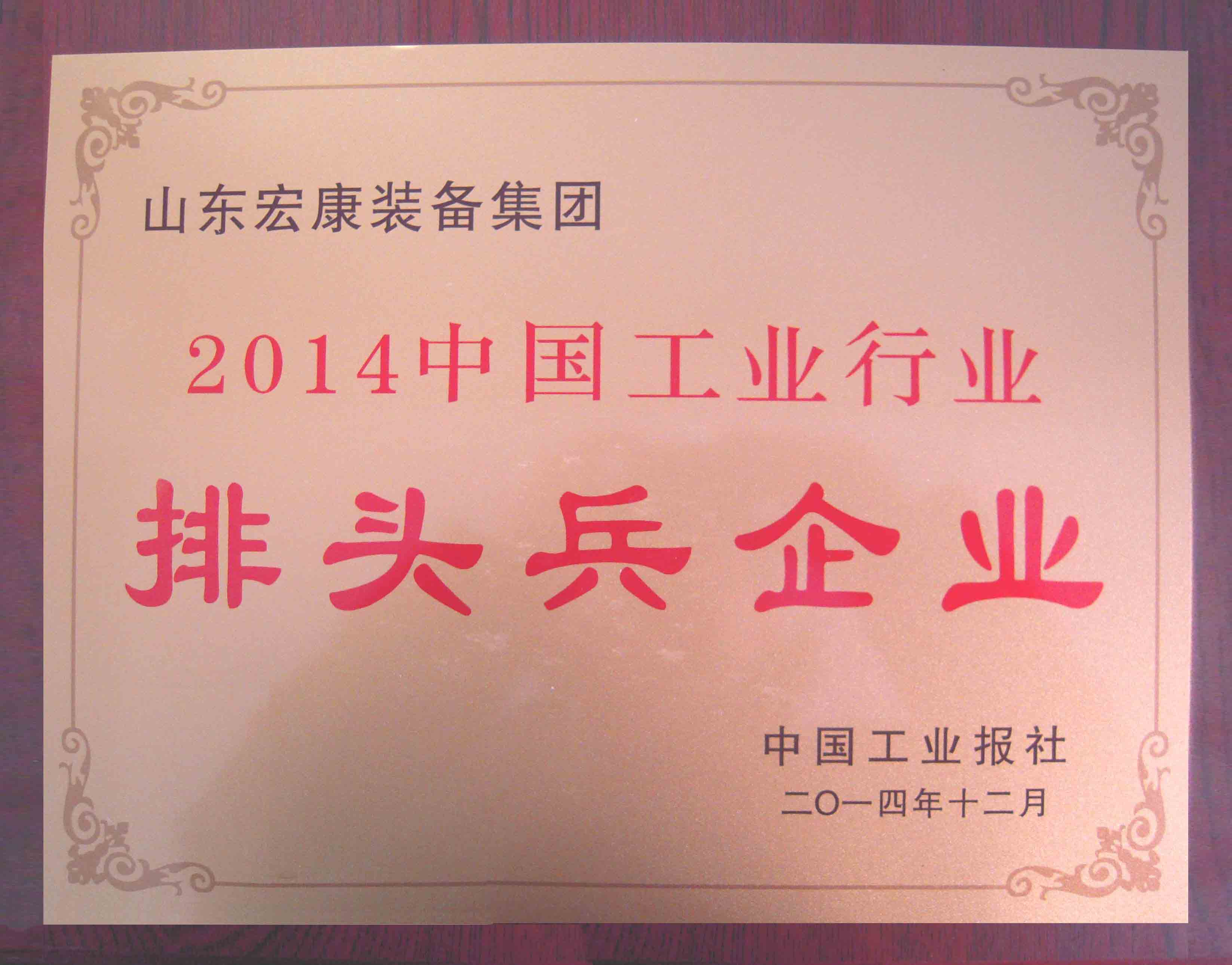 “中國工業(yè)行業(yè)排頭兵”是由中國工業(yè)報社主辦的一項(xiàng)旨在推動工業(yè)行業(yè)龍頭企業(yè)加快自主創(chuàng)新、提升核心競爭力、推進(jìn)品牌建設(shè)、擴(kuò)大知名度的年度發(fā)布活動,表彰和鼓勵排頭兵企業(yè)在著力提升發(fā)展質(zhì)量和效益、促進(jìn)工業(yè)經(jīng)濟(jì)穩(wěn)定增長發(fā)揮的表率作用和示范效應(yīng)。根據(jù)權(quán)威統(tǒng)計(jì)資料,通過專家委員會審議,經(jīng)公示后,最終確定山東宏康裝備集團(tuán)為2014中國金屬成形機(jī)床制造行業(yè)排頭兵企業(yè)。