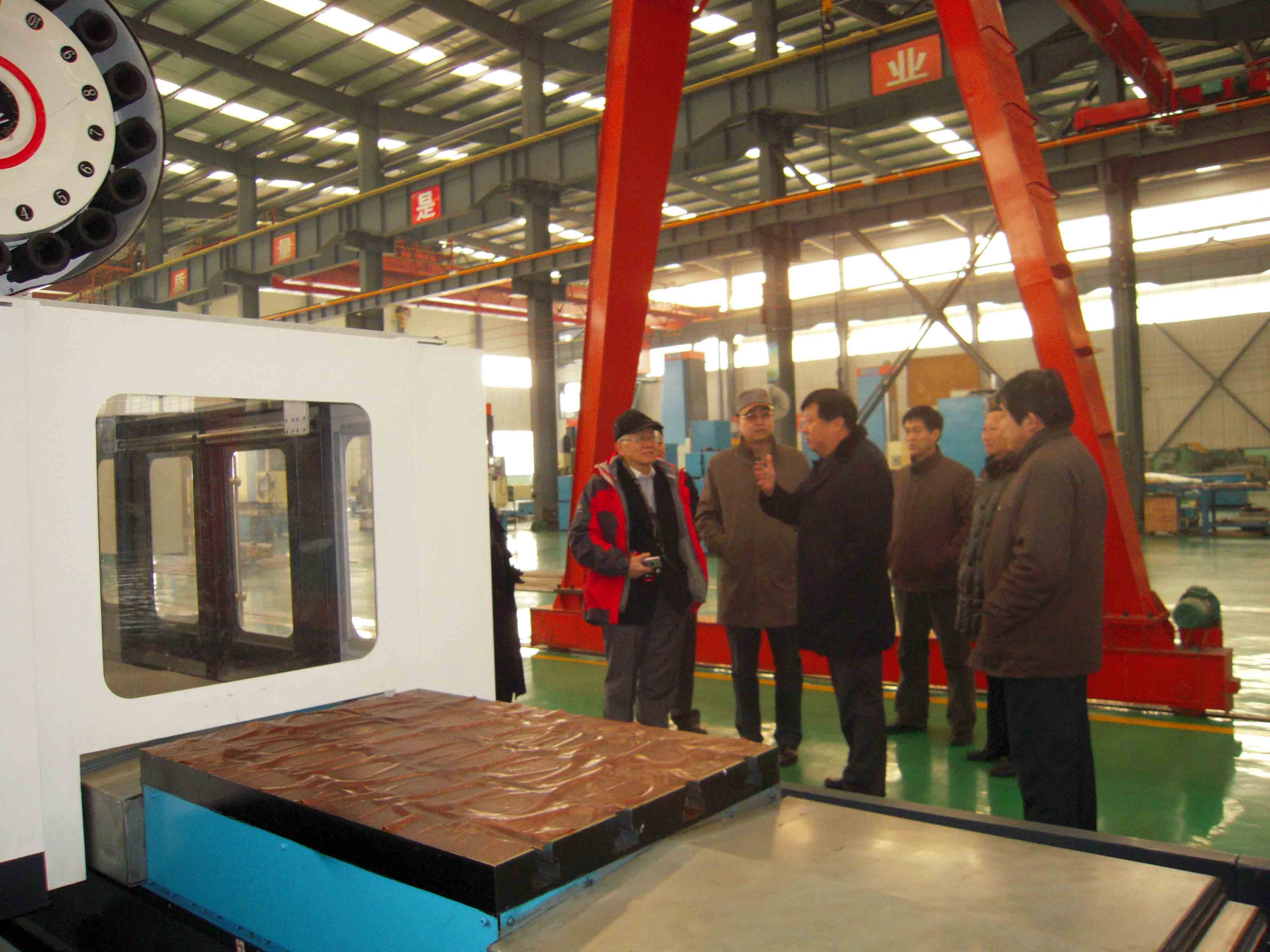 元月6日至7日 ,臺灣合一風力科技股份有限公司董事長衣仕凡一行來集團公司考察洽談。圖為董事長、總經理康鳳明陪同衣仕凡董事長參觀考察生產現場。
